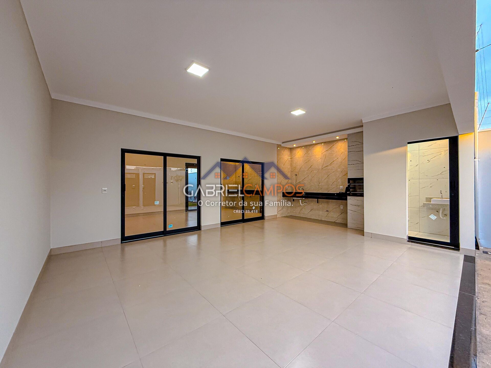 • Área gourmet com churrasqueira no porcelanato